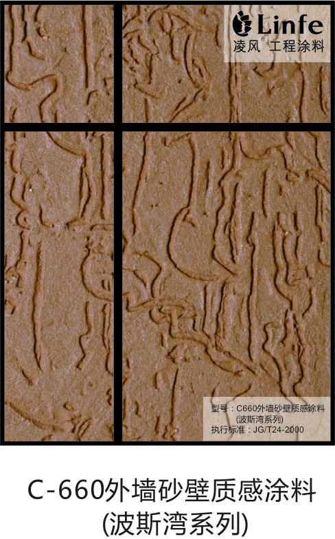 凌風(fēng)外墻砂壁質(zhì)感涂料經(jīng)歷多年不同地域不同氣侯的嚴(yán)酷與考驗,色澤依然光鮮如初,以其粗獷豪放、天然淳樸、變幻無窮、立體紋理、一改傳統(tǒng)建筑平面裝飾的呆板單調(diào)、成為現(xiàn)代建筑及家庭裝飾設(shè)計領(lǐng)域的一款絕佳素材。產(chǎn)品涵括了刮砂型、彈性刮砂型、砂膠型、拉毛型、浮雕型、仿樹皮型、粗砂藝術(shù)型等。