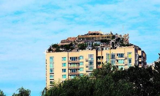 現(xiàn)實(shí)是,武漢某土豪把假山都搬到的屋頂了!